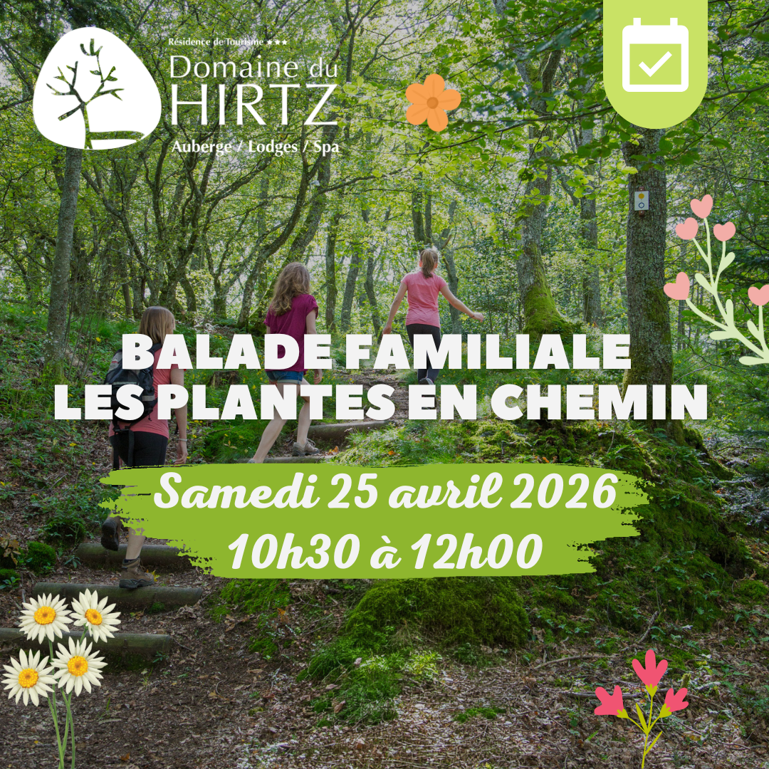Le samedi 25 avril 2026 de 10h30 à 12h, le Domaine du Hirtz vous propose une parenthèse nature, douce et accessible à tous.